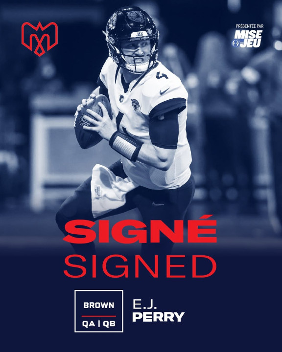 Les Alouettes de Montréal ont annoncé aujourd’hui la signature du quart-arrière américain E.J. Perry. Perry (6’2″, 210