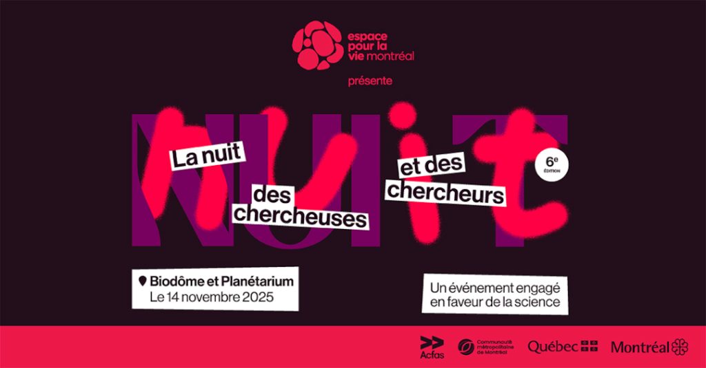 Le 14 novembre prochain, de 19 h à minuit, Espace pour la vie vous convie à la 6e édition de la Nuit des chercheuses et des chercheurs, une soirée unique et inspirante qui aura lieu au Biodôme et au Planétarium.